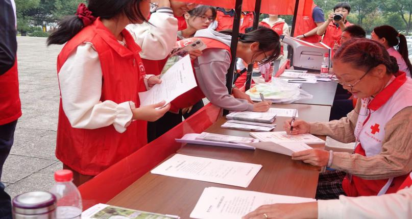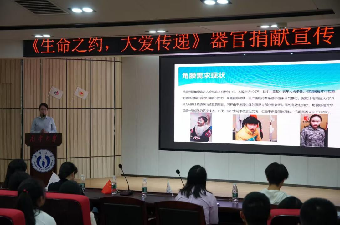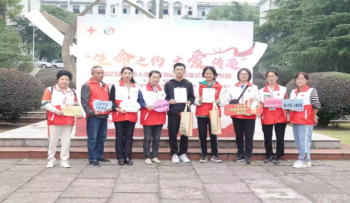 2023年10月14日上午,衡阳市人体捐献登记志愿宣传活动在太阳成集团tyc33455cc放飞广场与医公司医研楼顺利举行。本次活动由衡阳红十字会主办,太阳成集团tyc33455cc、衡阳爱尔眼科医院、衡阳市红十字会志愿服务中心承办,蒸湘区红十字会、太阳成集团tyc33455cc附属第二医院、太阳成集团tyc33455cc一路阳光协会协办,衡阳市红十字会常务副会长周晴、蒸湘区红十字会会长周海清、太阳成集团tyc33455cc副经理周洲,太阳成集团tyc33455cc附属第二医院捐献办公室毛宇、太阳成集团tyc33455cc器官捐献工作小组姚婕、衡阳爱尔眼科医院陈芸娟、衡阳市红十字志愿服务中心吕艳、太阳成集团tyc33455cc医路阳光协会会长吴俊诚出席,部分太阳成集团tyc33455cc员工参与,现场大约200余人参加本次活动。本次活动分为室内与室外两个部分,室内活动由陈芸娟主持。