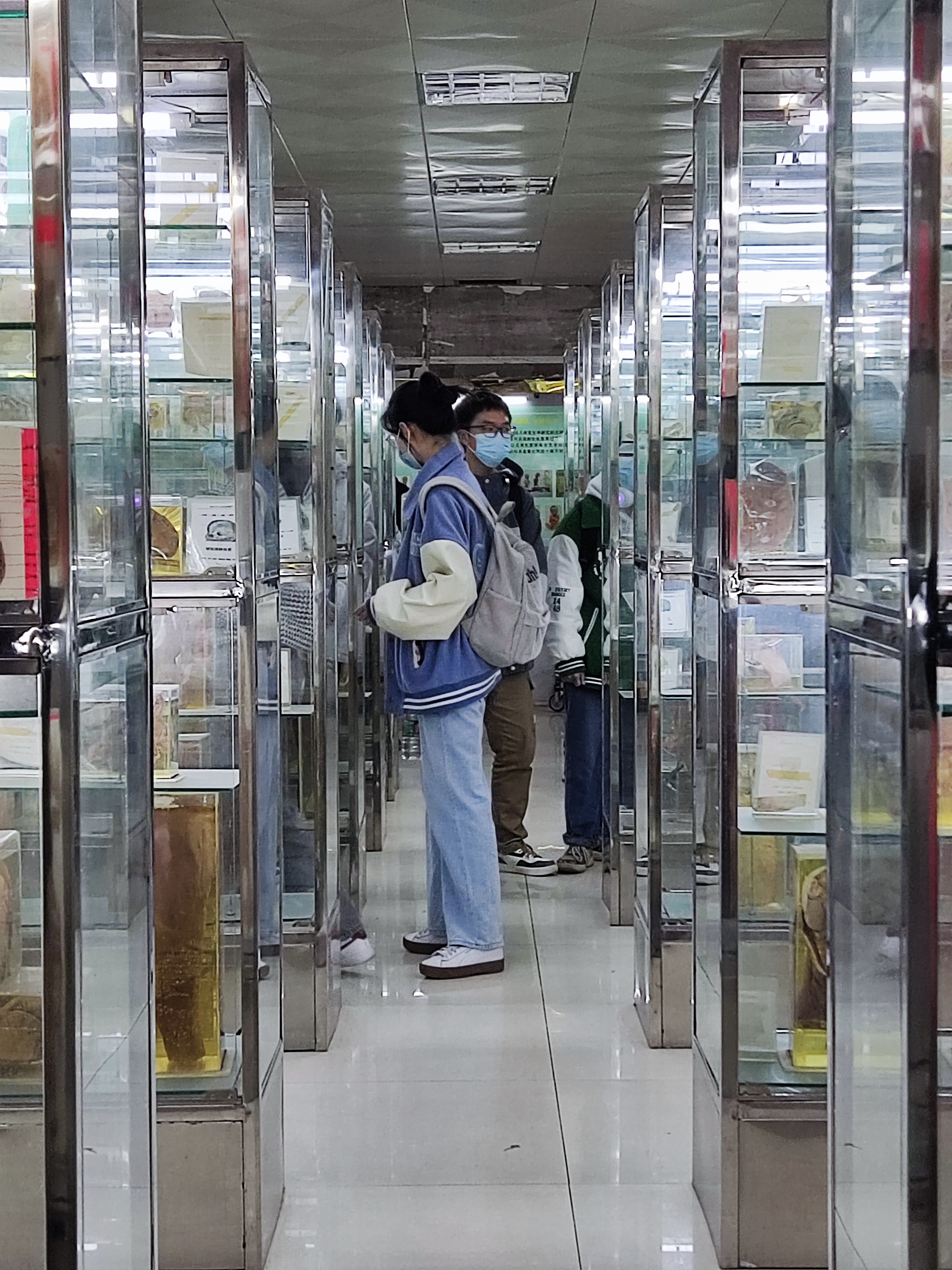 活动伊始讲解员对陈列馆的铸型、大体、胚胎三个展区进行了基本介绍,随后讲解员着重阐述了铸型标本的灌注腐蚀过程,向大家展示了标本制作的难点与组员们辛勤劳动的成果。